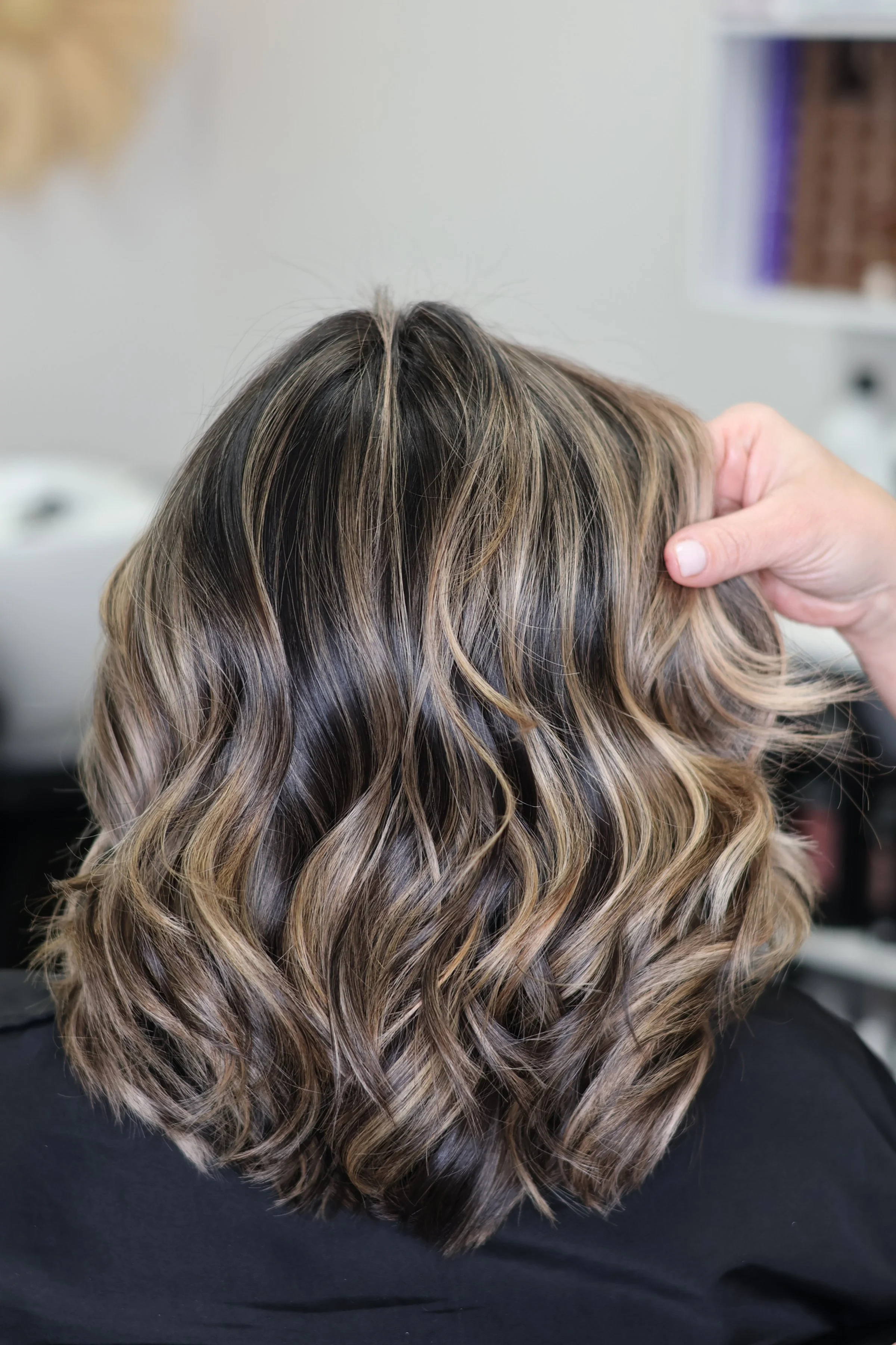 Una deliciosa mezcla de tonos toffee y caramelo, cálidos y radiantes como azúcar derretido bajo el sol. La técnica de balayage crea una transición suave y natural desde las raíces color moca hasta las puntas doradas con matices de miel, aportando profundidad y luminosidad sin esfuerzo. Los delicados reflejos que enmarcan el rostro iluminan sus facciones, mientras que el acabado brillante le da un efecto sedoso y con mucho brillo. El resultado final es un look rico, cálido y acogedor, como un remolino de caramelo en una taza de espresso caliente.